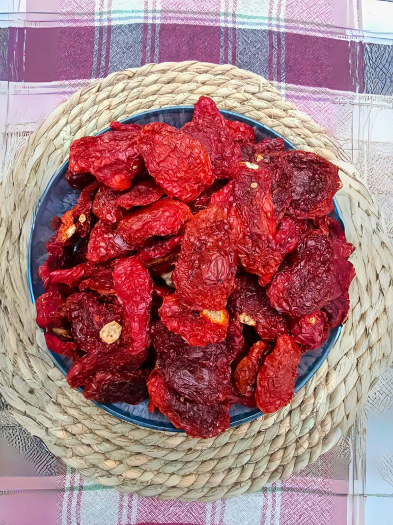 Doğal Kurutulmuş Domates ile et yemeklerinde, tavuk yemeklerindeve sebze yemeklerinde kullanabilir. Kahvaltı sofralarında zeytinyağlı özel soslarla güzel bir lezzet oluşturabilirsiniz.